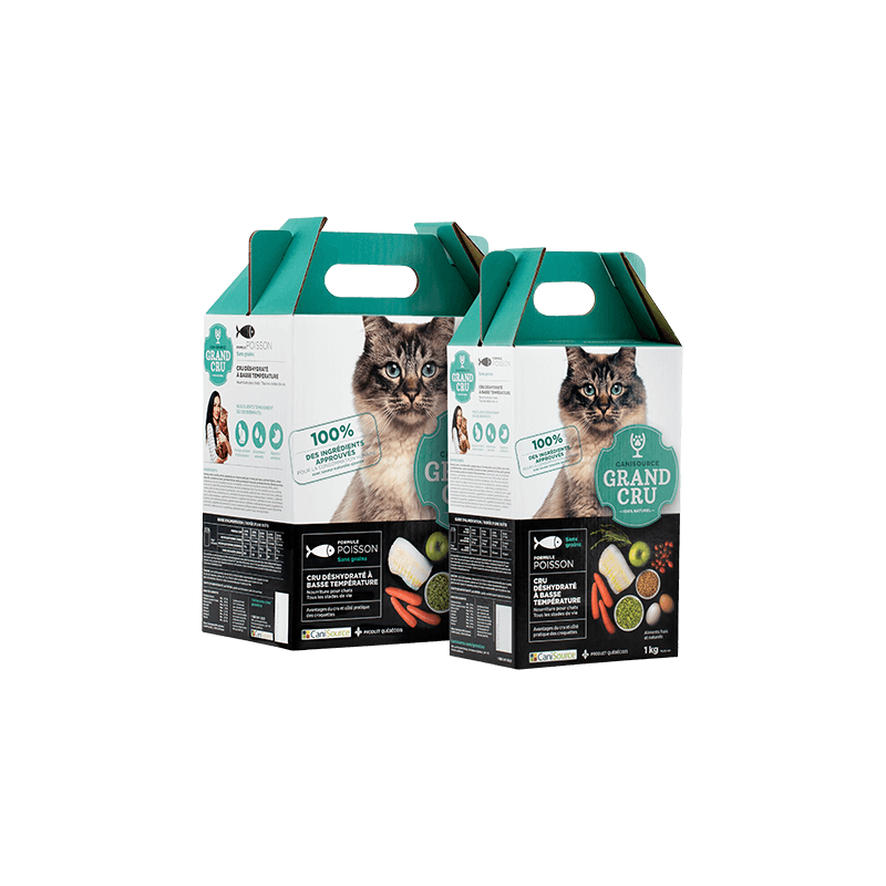 Rations et durées peuvent varier selon les besoins de votre chat. Donnez toujours à votre chat un accès à de l'eau fraiche. Les produits CaniSource Grand Cru peuvent être réhydratés, mais il n'est pas nécessaire de le faire. La texture, la couleur et la taille des croquettes varient; c'est le résultat de notre procédé de fabrication unique et des ingrédients frais qui les composent.